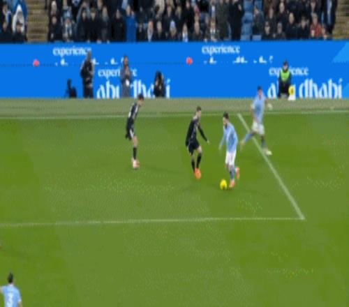 补时第1分钟,切尔基右路横传,在几乎得不到射门空间的情况下,福登横向连过2人之后左脚强行起脚,皮球直入死角。