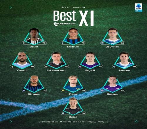 北京时间1月9日,意甲官方公布了联赛第19轮的最佳阵容,乔纳森-戴维、迪马尔科、法乔利入选。