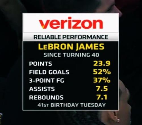 12月29日,湖人125比101轻取国王,本场比赛,詹姆斯贡献24分3篮板5助攻,值得注意是的在40岁后的56场比赛中,詹姆斯场均23.9分7.1篮板和7.5次助攻!同时在此前ESPN公布40岁后单场砍下35